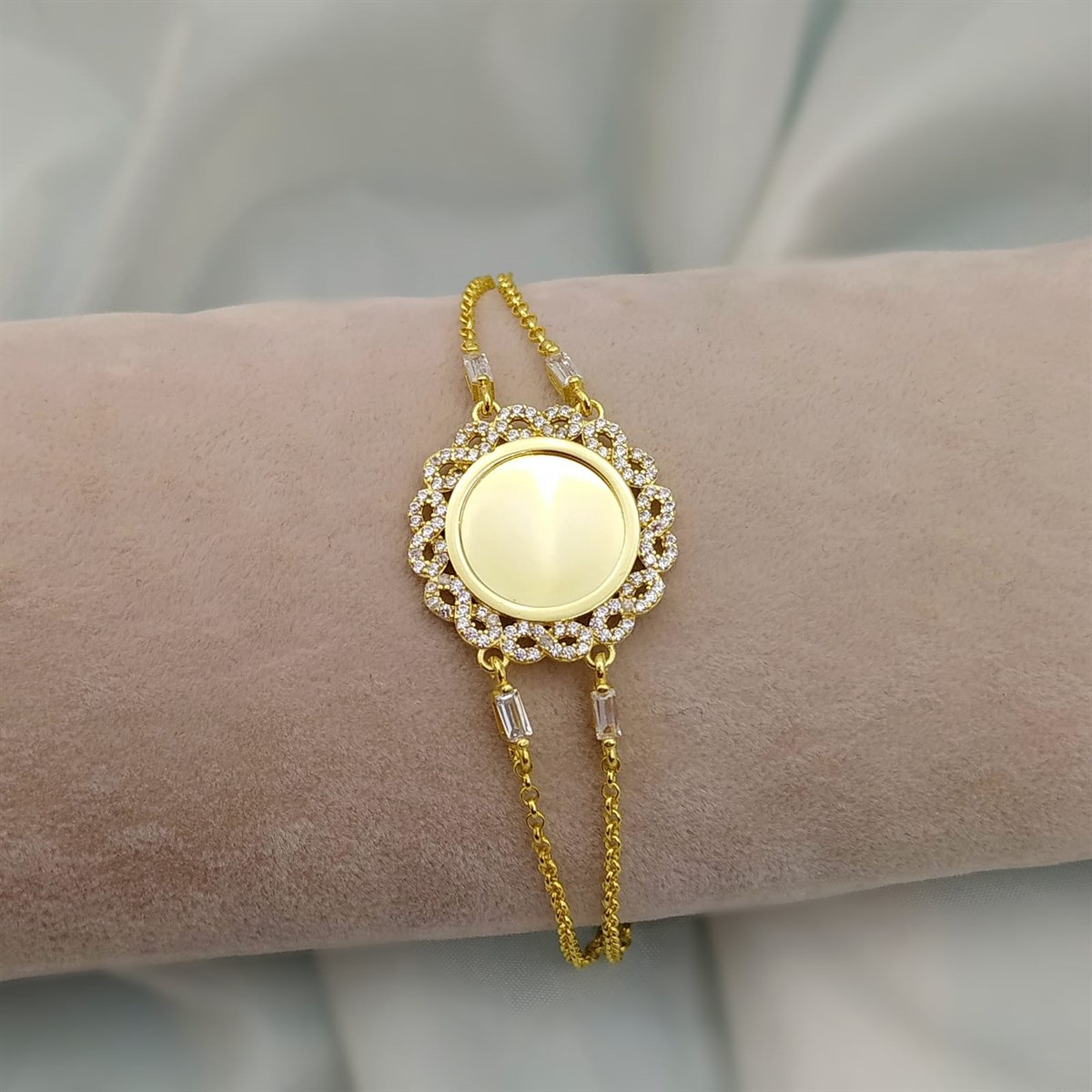 Gümüş Plaka ve Tuğra Sıralı Bileklik 18k Altın Kaplama 925 Ayar Login to see prices